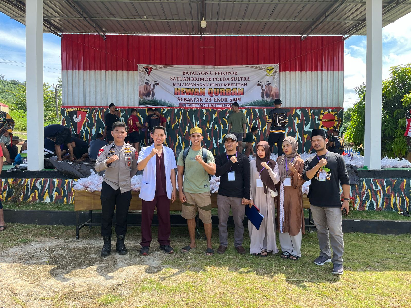 Penyembelihan hewan Qurban di laksanakan di halaman Mako Brimob Batalyon C Pelopor Desa Totallang Kecamatan Lasusua Kabupaten Kolaka Utara, Jum’at (06/06/2025).