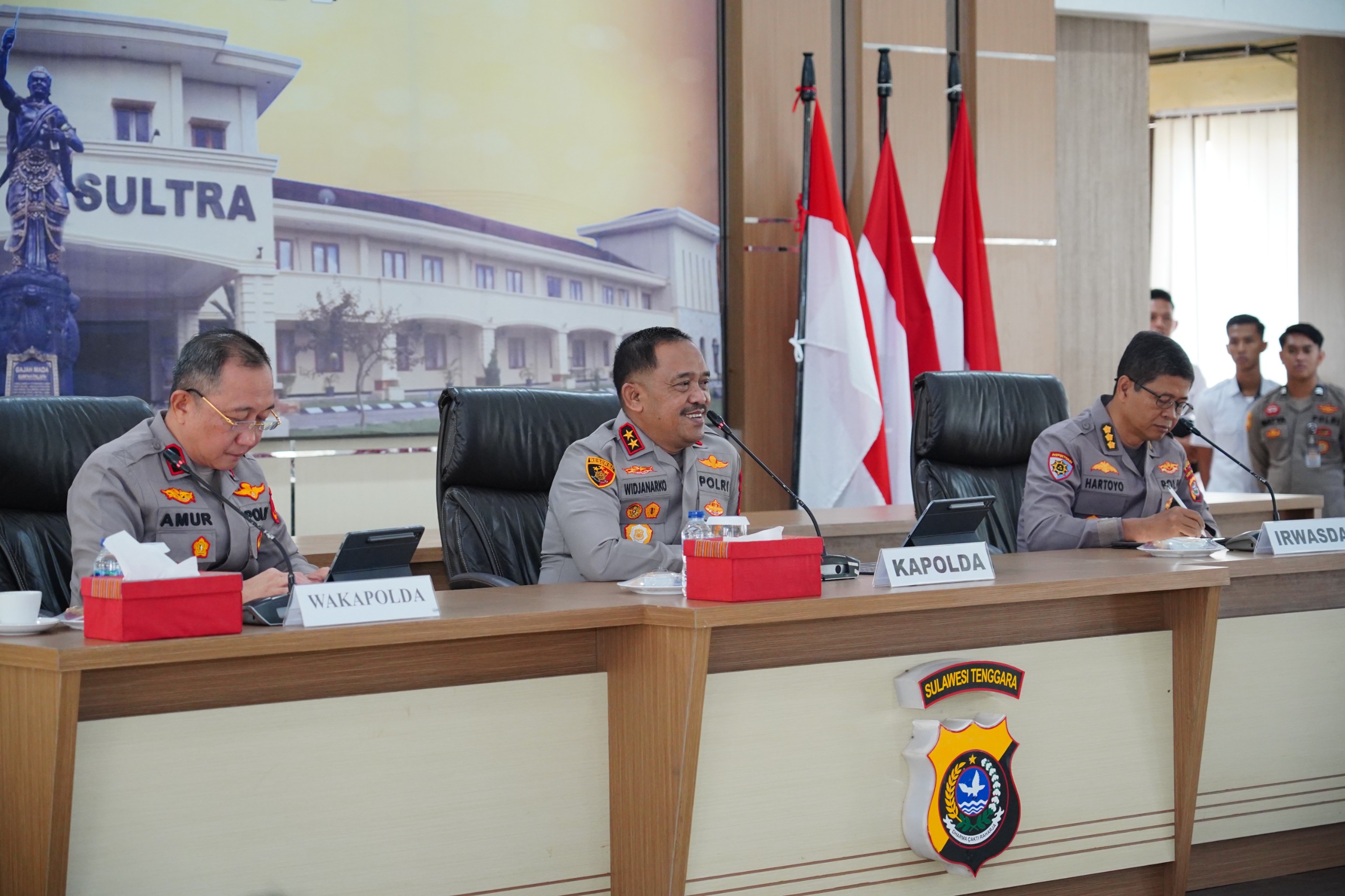 Rapat ini dipimpin langsung oleh Kapolda Sultra, Irjen Pol Didik Agung Widjanarko, S.I.K., M.H., dan dilaksanakan dalam suasana penuh kesiapan dan sinergi antar satuan, bertempat di Mapolda Sultra, pada [tanggal/lokasi lengkap bisa ditambahkan jika ada].