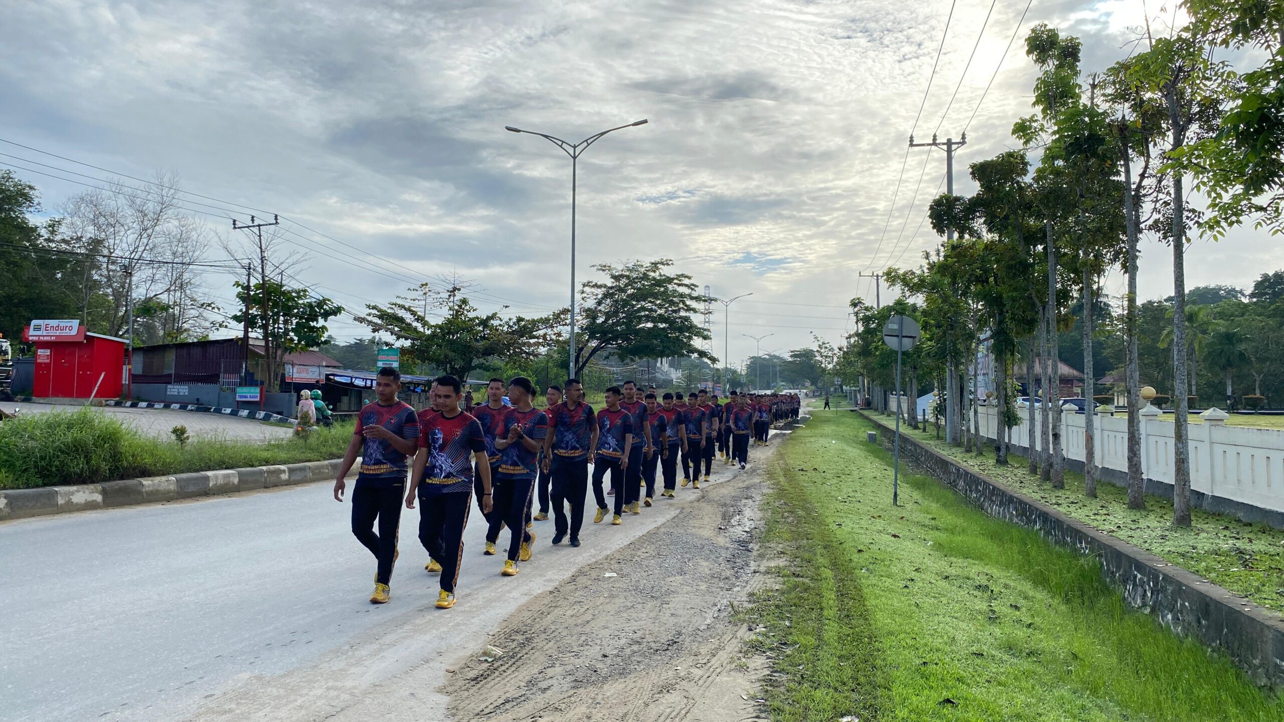 Kegiatan olahraga dimulai pada pukul 07.00 WITA dengan senam pemanasan bersama, dilanjutkan dengan berbagai aktivitas fisik seperti jalan santai mengelilingi lingkungan markas, latihan kekuatan tubuh, hingga permainan olahraga yang bertujuan membangun kekompakan dan semangat kebersamaan di antara personel.
