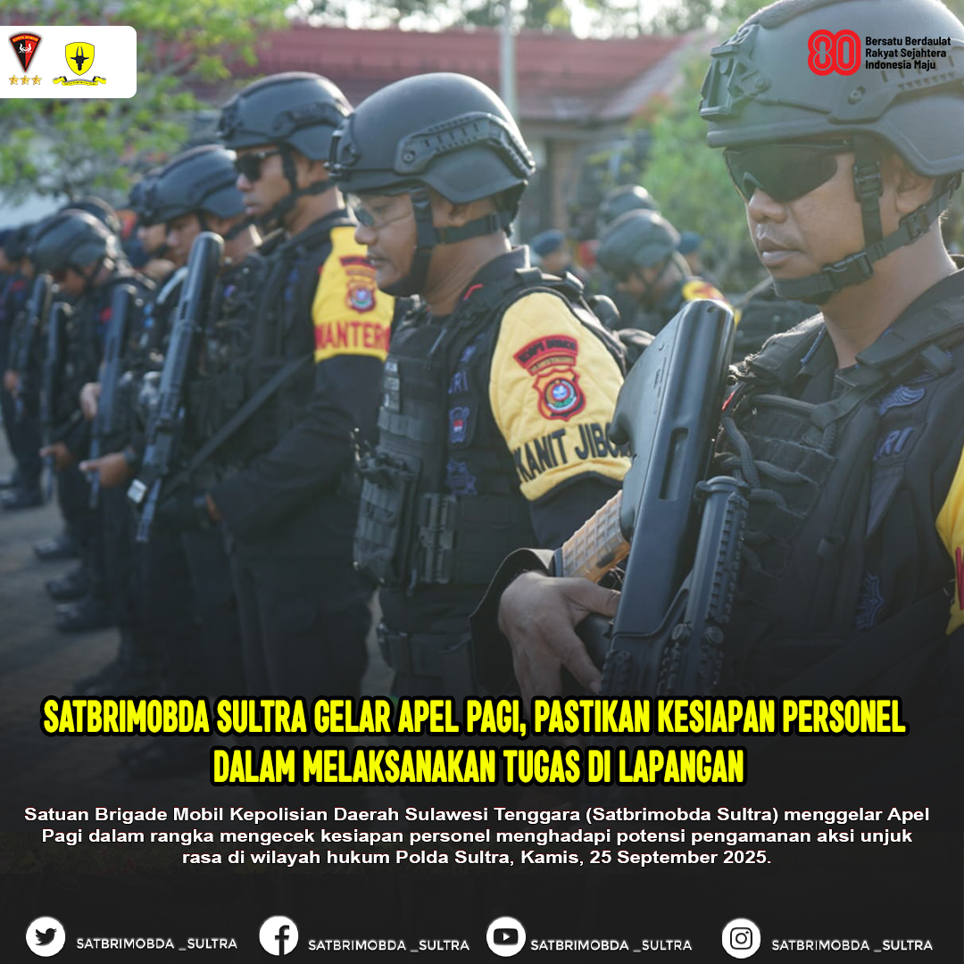 Dengan pelaksanaan apel ini, Satbrimobda Sultra menunjukkan komitmennya untuk senantiasa siap siaga dalam mengawal keamanan, menjaga ketertiban, dan memberikan rasa aman bagi masyarakat Sulawesi Tenggara.