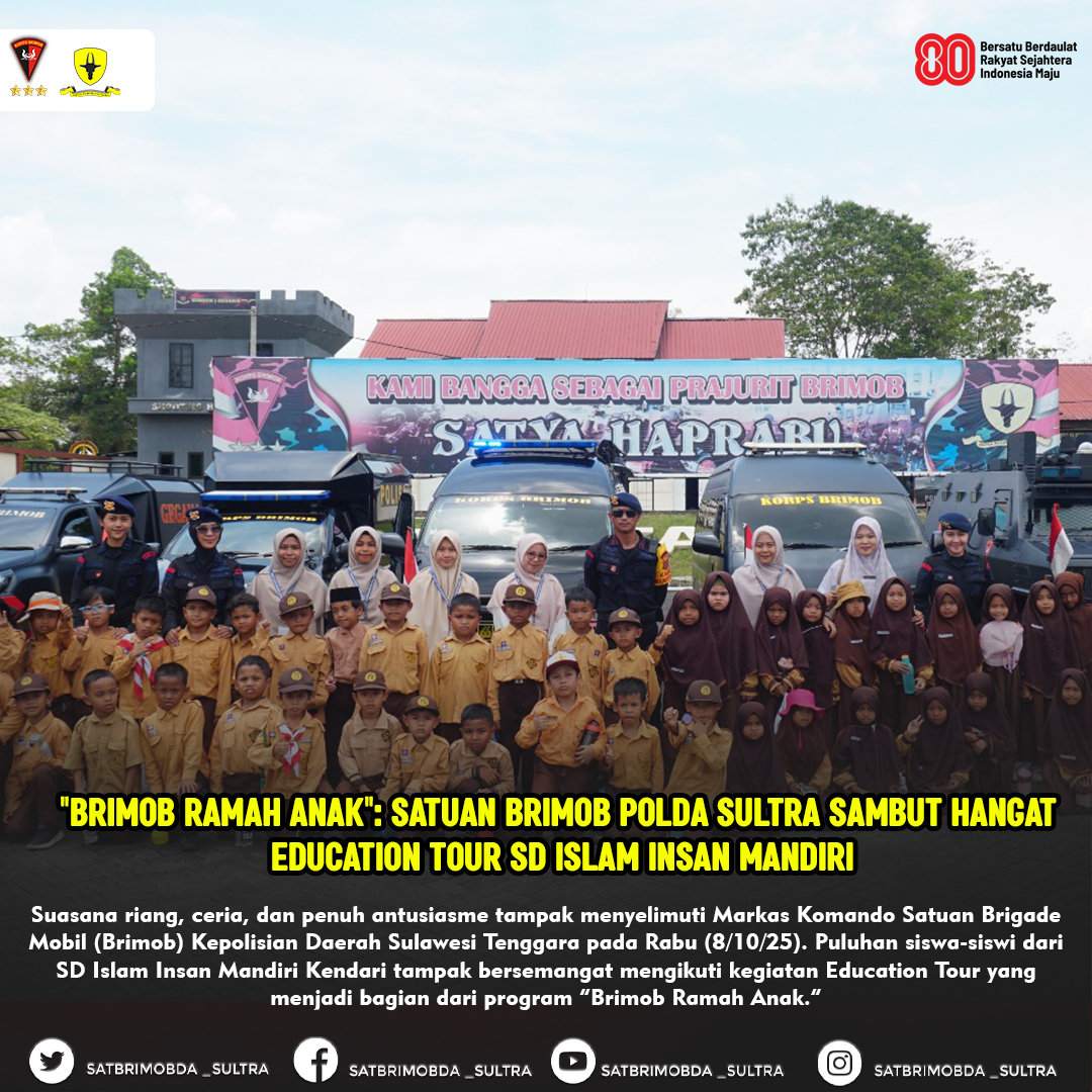 Dengan terselenggaranya kegiatan Education Tour SD Islam Insan Mandiri ini, Satbrimob Polda Sultra membuktikan bahwa di balik ketegasan dan disiplin tinggi, terdapat wajah Brimob yang penuh kepedulian, kasih sayang, dan semangat mendidik generasi muda demi masa depan Indonesia yang lebih baik.