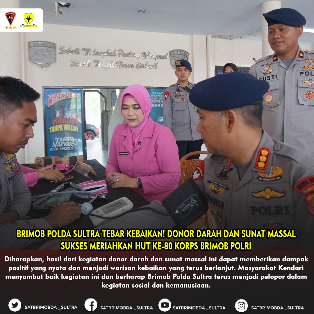 Diharapkan, hasil dari kegiatan donor darah dan sunat massal ini dapat memberikan dampak positif yang nyata dan menjadi warisan kebaikan yang terus berlanjut. Masyarakat Kendari menyambut baik kegiatan ini dan berharap Brimob Polda Sultra terus menjadi pelopor dalam kegiatan sosial dan kemanusiaan.