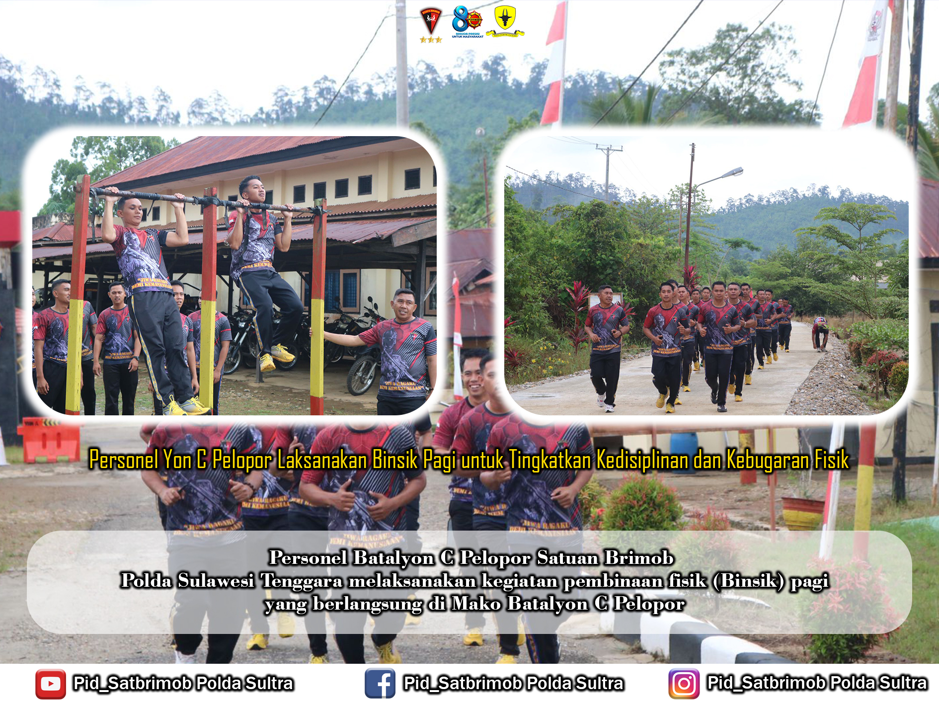 Personel Batalyon C Pelopor Satuan Brimob Polda Sulawesi Tenggara melaksanakan kegiatan pembinaan fisik (Binsik) pagi yang berlangsung di Mako Batalyon C Pelopor, Jumat 28 November 2025 Kegiatan rutin ini merupakan salah satu program pembinaan kemampuan dasar yang bertujuan menjaga sekaligus meningkatkan kebugaran jasmani, kedisiplinan, dan kesiapsiagaan personel dalam menjalankan tugas-tugas operasional di lapangan.