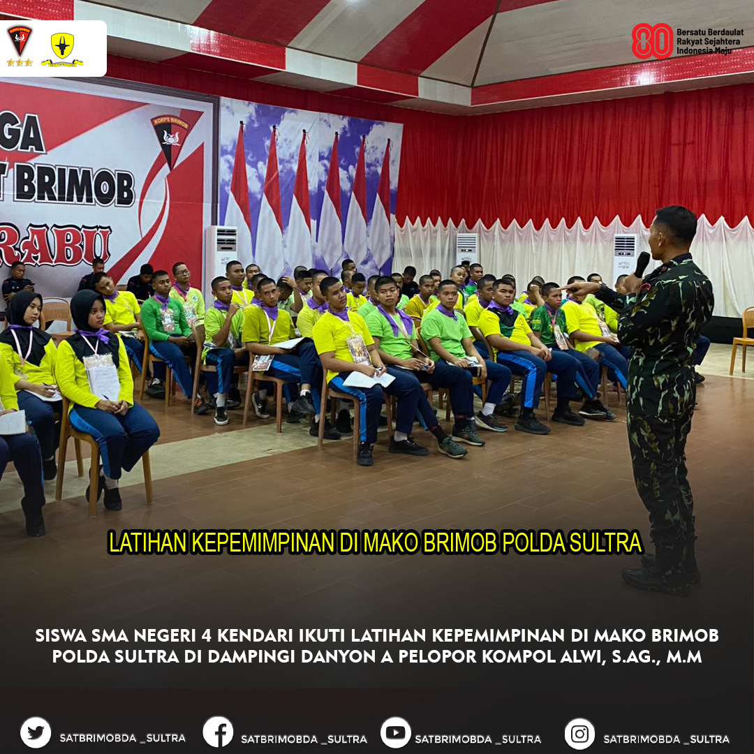 Kendari—Puluhan siswa SMA Negeri 4 Kendari melakukan kunjungan edukatif ke Markas Komando Satuan Brimob Polda Sulawesi Tenggara, Sabtu (15/11/2025), dalam rangka mengikuti kegiatan Latihan Kepemimpinan Siswa (LKS). Program pembinaan generasi muda ini dipimpin langsung oleh Komandan Batalyon A Pelopor, Kompol Alwi, S.Ag., M.M., sebagai bentuk dukungan Brimob dalam menumbuhkan jiwa kepemimpinan, kedisiplinan, serta karakter tangguh pada pelajar.