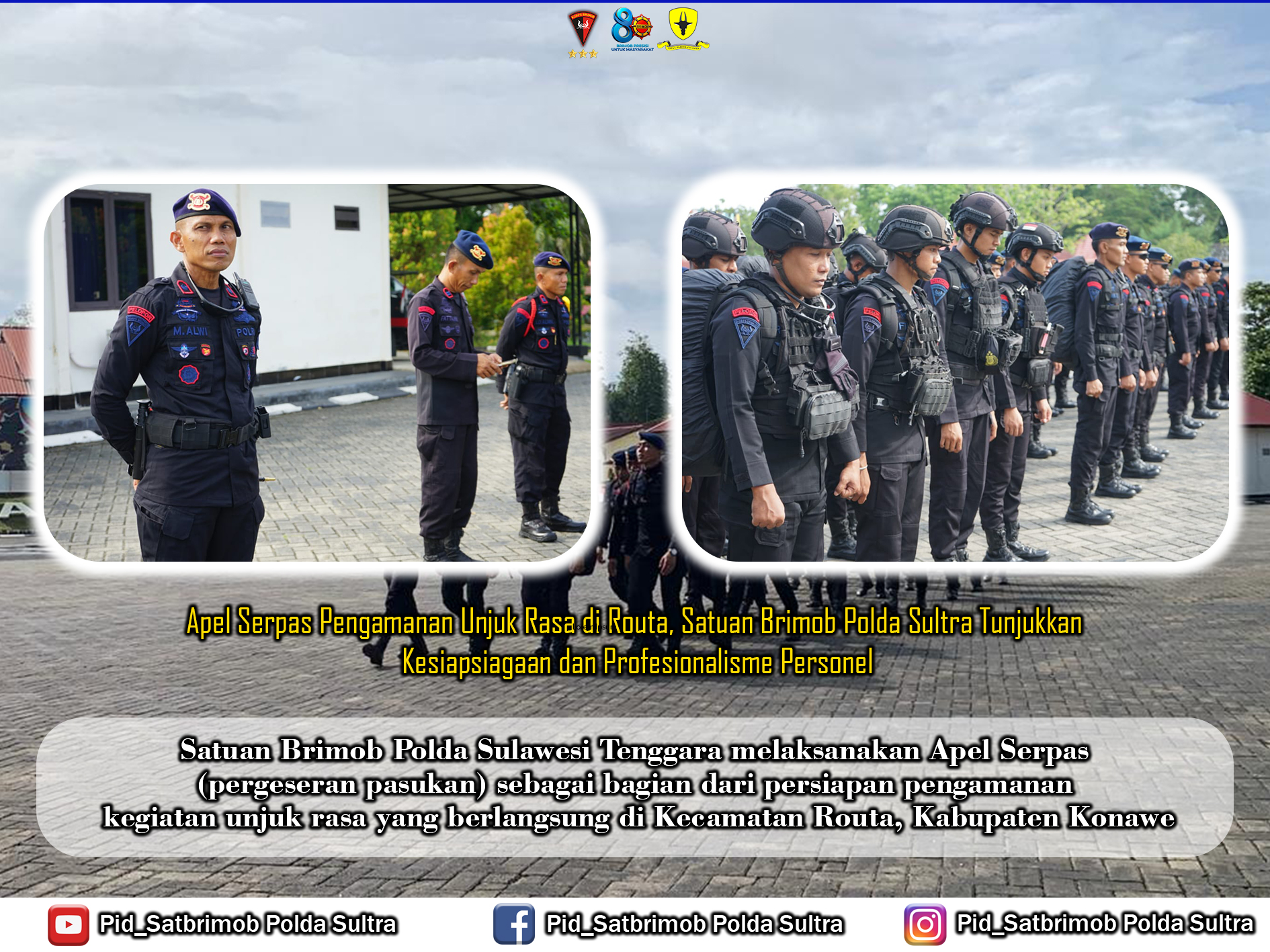 Kehadiran personel Satuan Brimob Polda Sultra dalam pengamanan unjuk rasa di Kecamatan Routa merupakan bentuk komitmen Polri dalam memberikan rasa aman kepada seluruh elemen masyarakat, baik kepada peserta unjuk rasa maupun masyarakat sekitar. Melalui persiapan yang matang dan terukur, diharapkan seluruh rangkaian kegiatan dapat berlangsung dengan aman, lancar, dan terkendali.