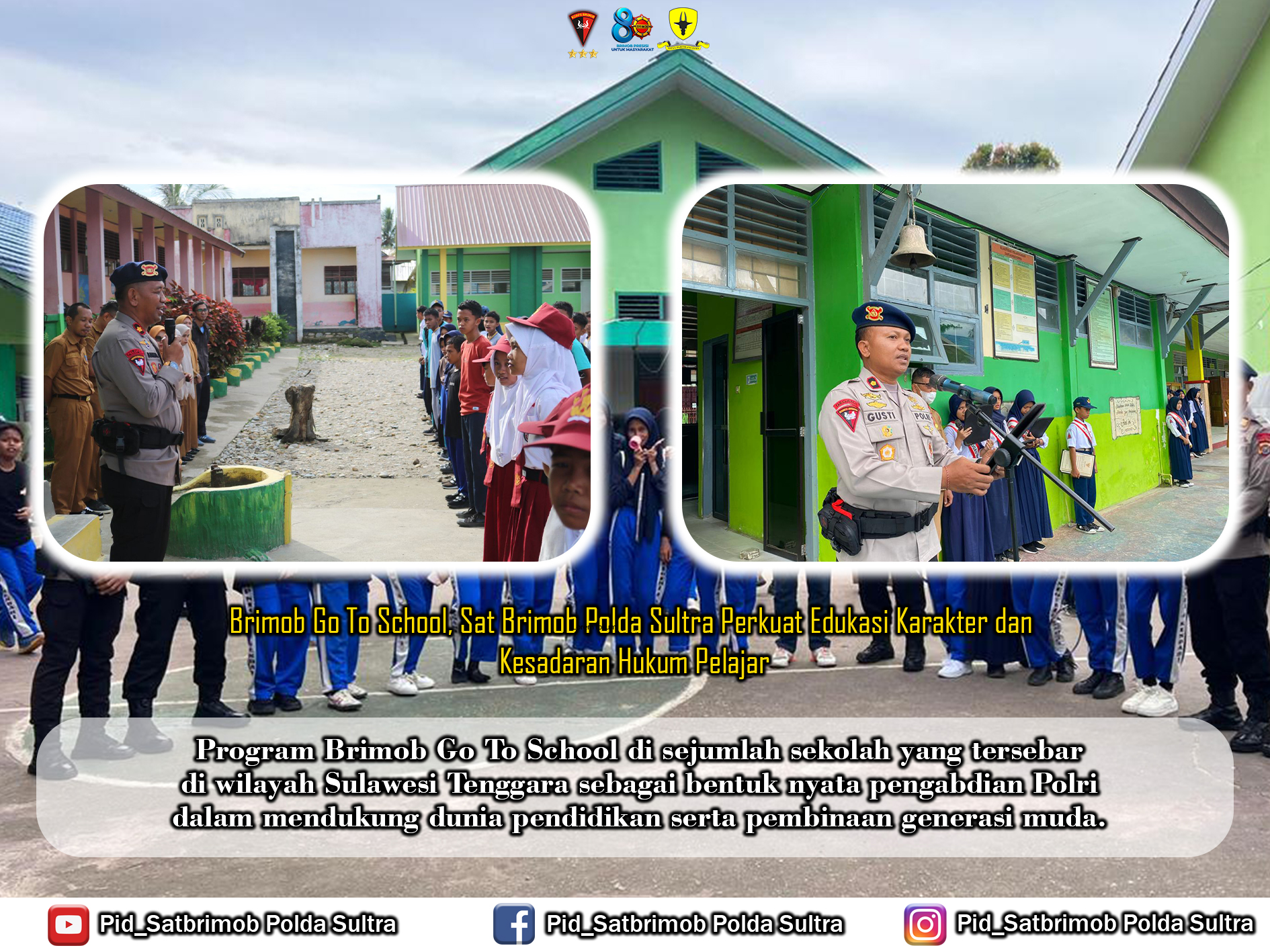 Komandan Satuan Brimob Polda Sultra menegaskan bahwa Program Brimob Go To School merupakan bagian dari komitmen Polri untuk terus hadir di tengah masyarakat, khususnya dalam mendukung pembentukan karakter generasi muda yang berintegritas, disiplin, dan berakhlak mulia. Diharapkan melalui kegiatan ini, terjalin sinergi yang kuat antara Polri dan dunia pendidikan dalam menciptakan lingkungan belajar yang aman, nyaman, dan kondusif.