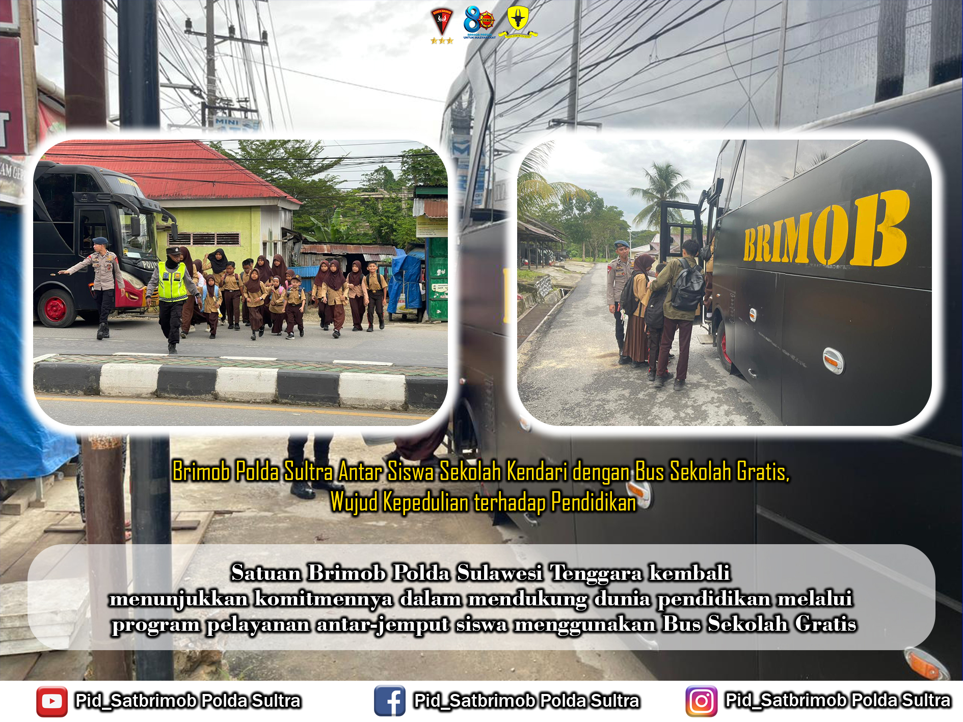 Komandan Satuan Brimob Polda Sultra, melalui perwira pengendali kegiatan, menyampaikan bahwa layanan Bus Sekolah Gratis ini merupakan bagian dari dukungan Brimob terhadap peningkatan kualitas pendidikan di Sulawesi Tenggara. Dengan tersedianya transportasi yang aman, para siswa diharapkan dapat lebih disiplin dan bersemangat dalam mengikuti proses belajar mengajar setiap hari.