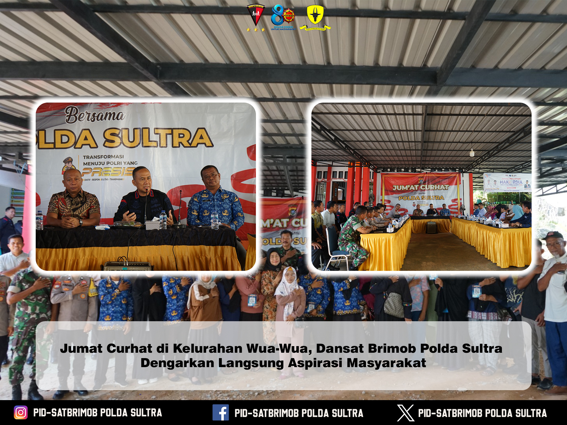 Kendari — Dalam rangka memperkuat komunikasi dua arah antara Polri dan masyarakat,  Komandan Satuan Brimob Polda Sulawesi Tenggara, Kombes Pol Dr. Sugianto Marweki, S.I.K., M.Si., melaksanakan kegiatan Jumat Curhat bersama warga Kelurahan Wua-Wua, Kota Kendari, pada Jumat (tanggal dapat disesuaikan).