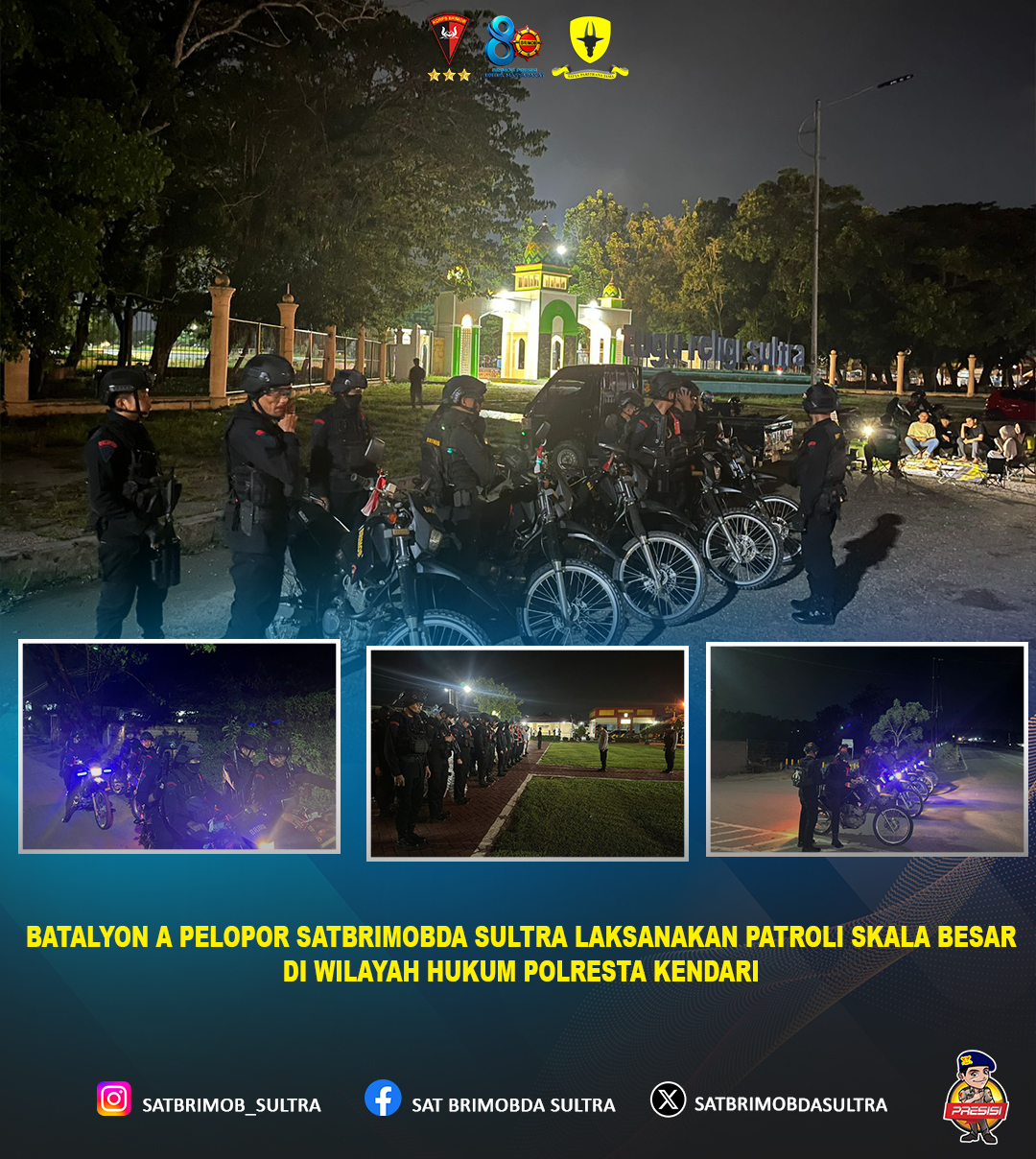 Satbrimobda Polda Sulawesi Tenggara menegaskan komitmennya untuk terus bersinergi dengan seluruh jajaran kepolisian dan unsur terkait dalam menjaga keamanan dan ketertiban masyarakat, guna mewujudkan situasi kamtibmas yang aman dan kondusif di wilayah Sulawesi Tenggara, khususnya di Kota Kendari.