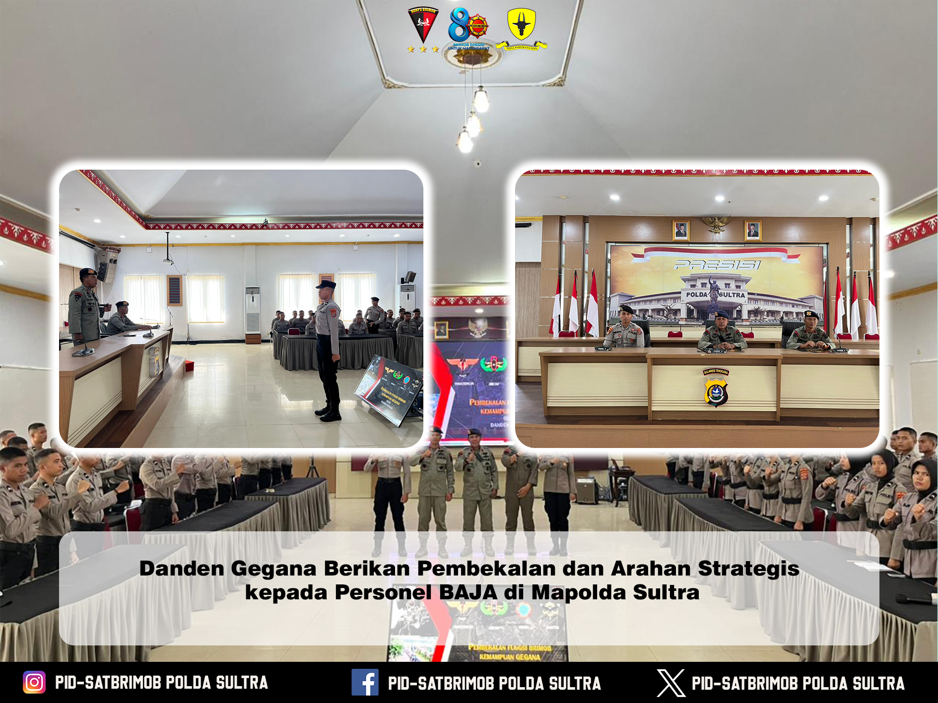Kendari — Dalam rangka meningkatkan kesiapan, profesionalisme, serta pemahaman tugas personel, Detasemen Gegana Satuan Brimob Polda Sulawesi Tenggara melaksanakan kegiatan pembekalan dan pengenalan materi yang dipimpin langsung oleh Danden Gegana, Kompol Asri Diyni, S.E., M.M., bertempat di Mapolda Sultra.