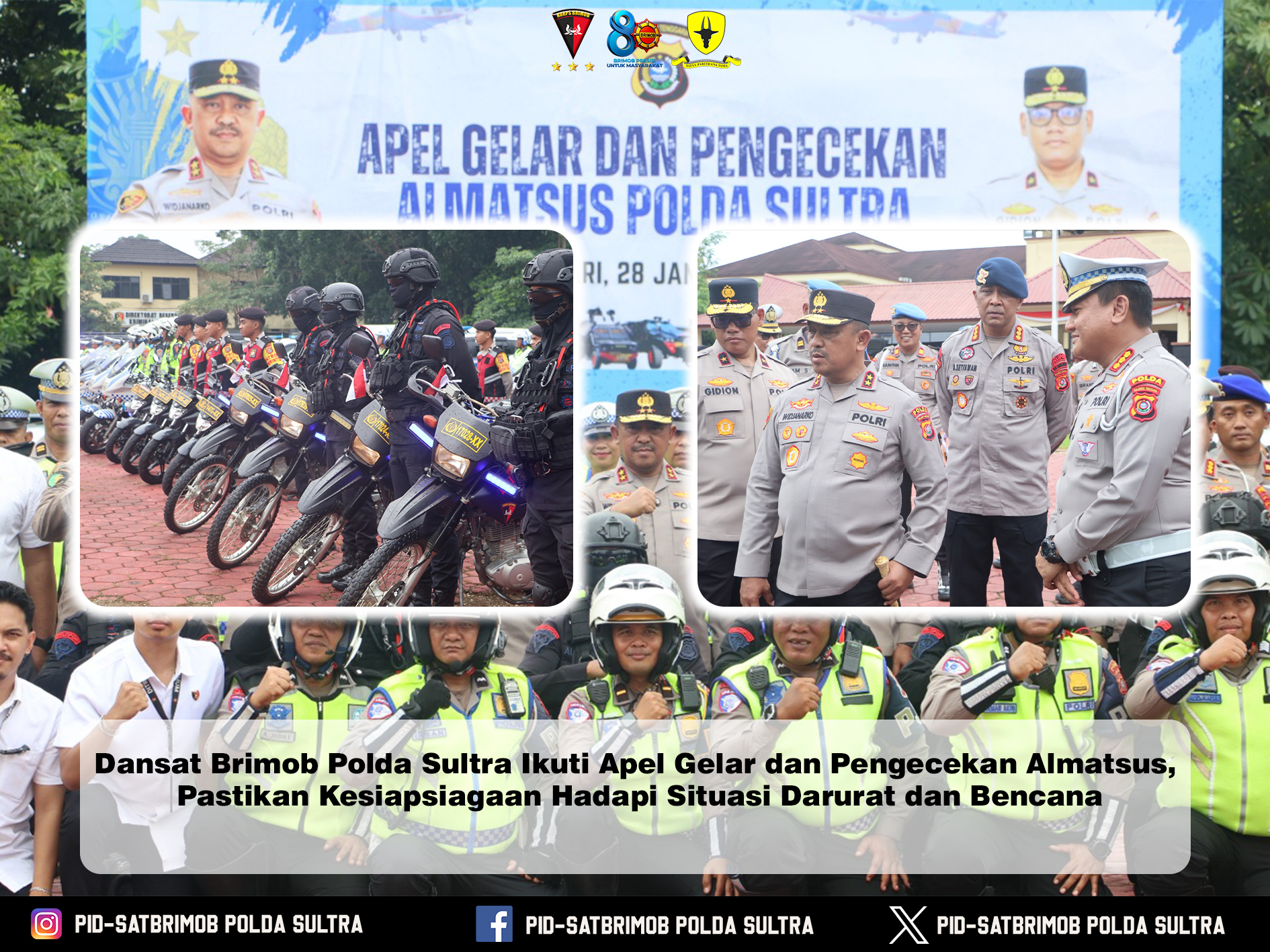 Dansat Brimob Polda Sultra, Kombes Pol. Agus Setiawan, S.I.K., menyatakan bahwa keikutsertaan Satuan Brimob dalam apel gelar dan pengecekan Almatsus merupakan bentuk komitmen Brimob sebagai pasukan elit Polri yang selalu berada di garis terdepan dalam penanganan bencana, operasi kemanusiaan, serta pengamanan situasi berintensitas tinggi.