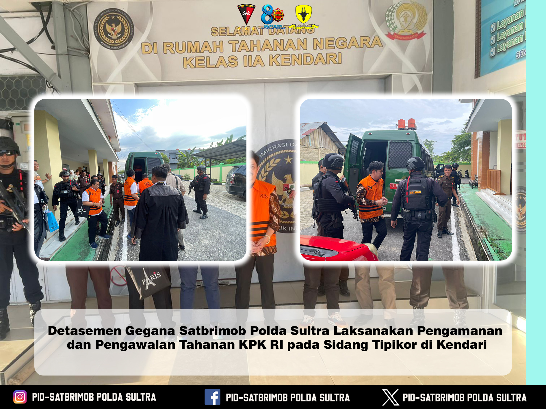 Kegiatan pengamanan dan pengawalan ini merupakan bagian dari dukungan penuh Polri, khususnya Satbrimob Polda Sultra, terhadap proses penegakan hukum yang transparan, profesional, dan berintegritas. Personel Detasemen Gegana diterjunkan untuk memastikan seluruh rangkaian sidang berlangsung aman, tertib, dan kondusif, mulai dari proses pengawalan tahanan, sterilisasi area, hingga pengamanan lingkungan sekitar pengadilan.