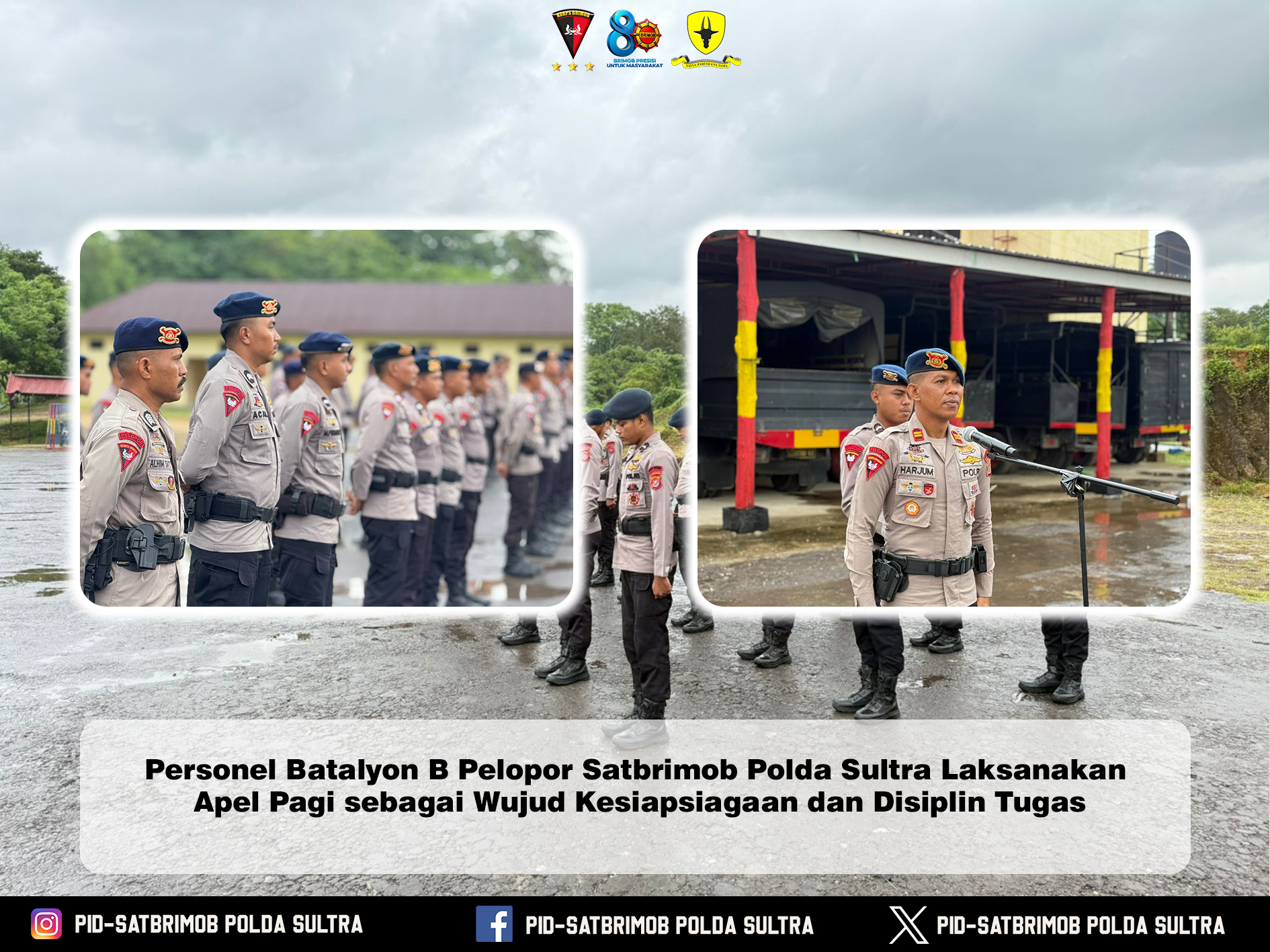 Melalui kegiatan apel pagi yang rutin dan berkesinambungan, Batalyon B Pelopor Satbrimob Polda Sultra berkomitmen untuk terus meningkatkan kualitas kinerja serta memberikan pelayanan terbaik demi terwujudnya keamanan dan ketertiban masyarakat yang kondusif di wilayah Sulawesi Tenggara.