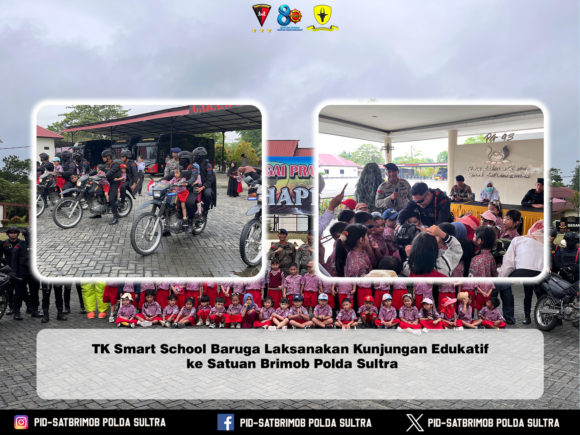 Kendari – Dalam rangka mendukung pembelajaran luar kelas serta menanamkan nilai kedisiplinan dan wawasan kebangsaan sejak usia dini, Taman Kanak-Kanak (TK) Smart School Baruga melaksanakan kunjungan edukatif ke Satuan Brimob Polda Sulawesi Tenggara.