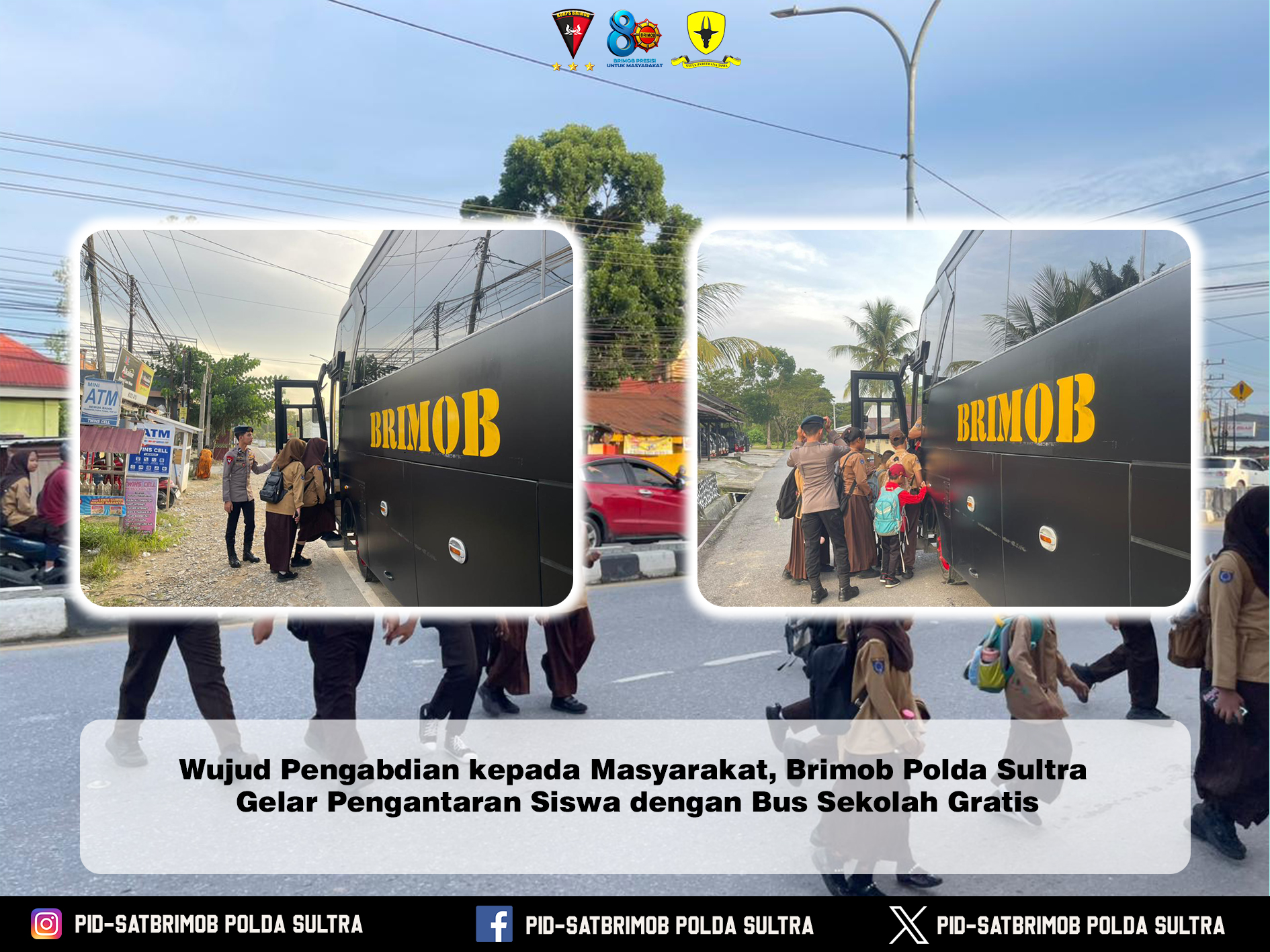 Dansat Brimob Polda Sultra melalui keterangan resminya menyampaikan bahwa program bus sekolah gratis ini merupakan bagian dari pengabdian Polri kepada masyarakat, khususnya dalam menciptakan rasa aman dan mendukung kelancaran aktivitas pendidikan. Selain itu, kehadiran bus sekolah gratis diharapkan dapat mengurangi risiko kecelakaan lalu lintas yang melibatkan pelajar serta menekan penggunaan kendaraan bermotor oleh siswa di bawah umur.