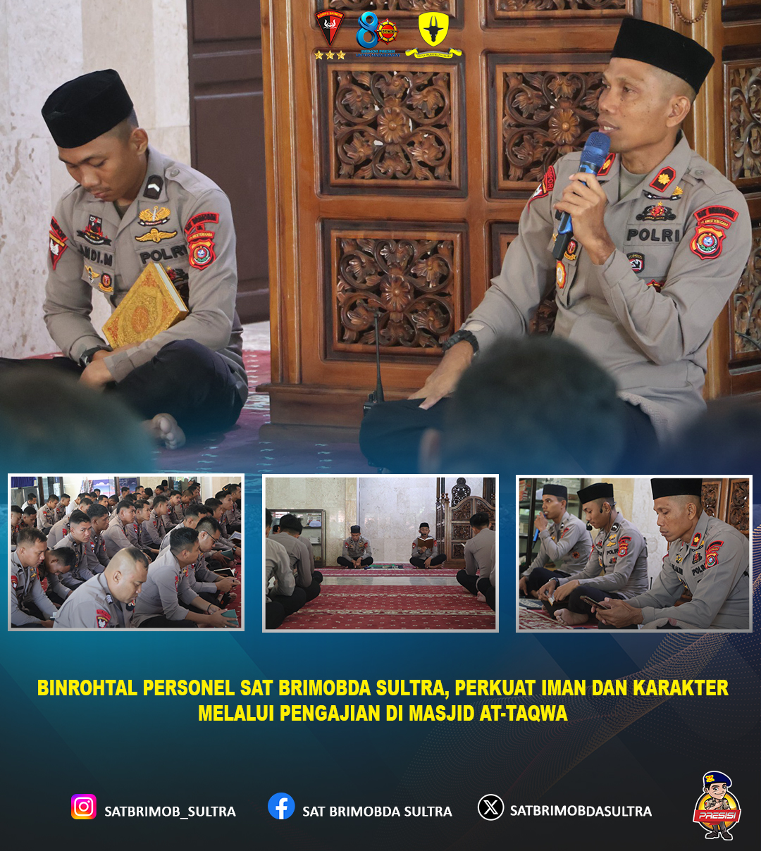 Kegiatan pengajian berlangsung dengan khidmat dan penuh kekhusyukan. Selain sebagai sarana meningkatkan pemahaman agama, Binrohtal juga menjadi momentum mempererat tali silaturahmi antar personel, sehingga tercipta kekompakan dan soliditas di lingkungan Sat Brimobda Sultra.