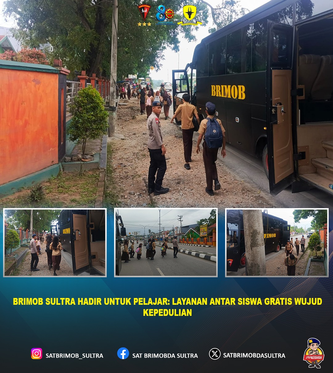 Kegiatan pengantaran tersebut dilaksanakan sebagai upaya membantu siswa agar dapat berangkat dan pulang sekolah dengan aman, nyaman, dan tepat waktu. Personel Satbrimobda Sultra turut memastikan perjalanan berlangsung tertib serta memberikan rasa aman selama di perjalanan.