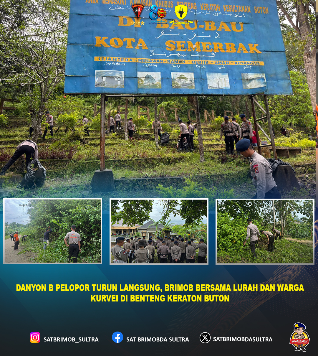 Kegiatan tersebut dipimpin langsung oleh Danyon B Pelopor, Kompol Bahtiar, S.Sos., sebagai bentuk kepedulian terhadap kebersihan lingkungan sekaligus upaya menjaga kelestarian salah satu situs bersejarah kebanggaan masyarakat Buton.