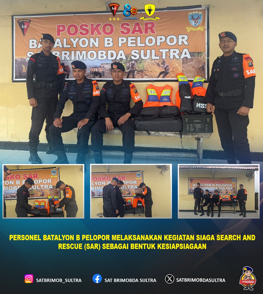 Kegiatan siaga SAR ini merupakan wujud komitmen Batalyon B Pelopor dalam memberikan perlindungan dan pelayanan kepada masyarakat. Dengan kesiapan yang optimal, diharapkan setiap potensi keadaan darurat dapat direspons secara cepat, tepat, dan profesional.