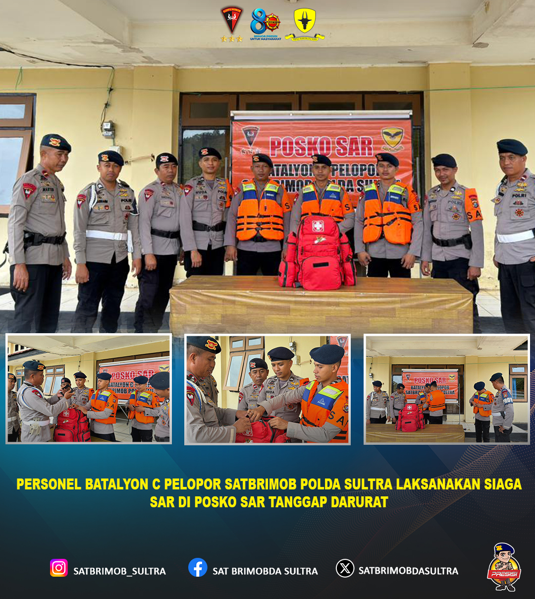 Kendari – Dalam rangka meningkatkan kesiapsiagaan dan respons cepat terhadap potensi bencana alam maupun kondisi darurat lainnya, Personel Batalyon C Pelopor Satuan Brimob Polda Sulawesi Tenggara melaksanakan kegiatan siaga Search and Rescue (SAR) di Posko SAR, sebagai bentuk komitmen pengabdian kepada masyarakat.