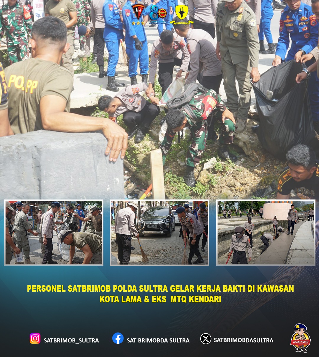 Sebagai wujud kepedulian terhadap kebersihan lingkungan dan kenyamanan ruang publik, personel Satuan Brimob Polda Sulawesi Tenggara melaksanakan kegiatan kerja bakti di wilayah Kota Kendari. Kegiatan tersebut difokuskan di sejumlah titik strategis, yakni kawasan Kota Lama, Area Pasar Sentral, serta Eks MTQ Kota Kendari.