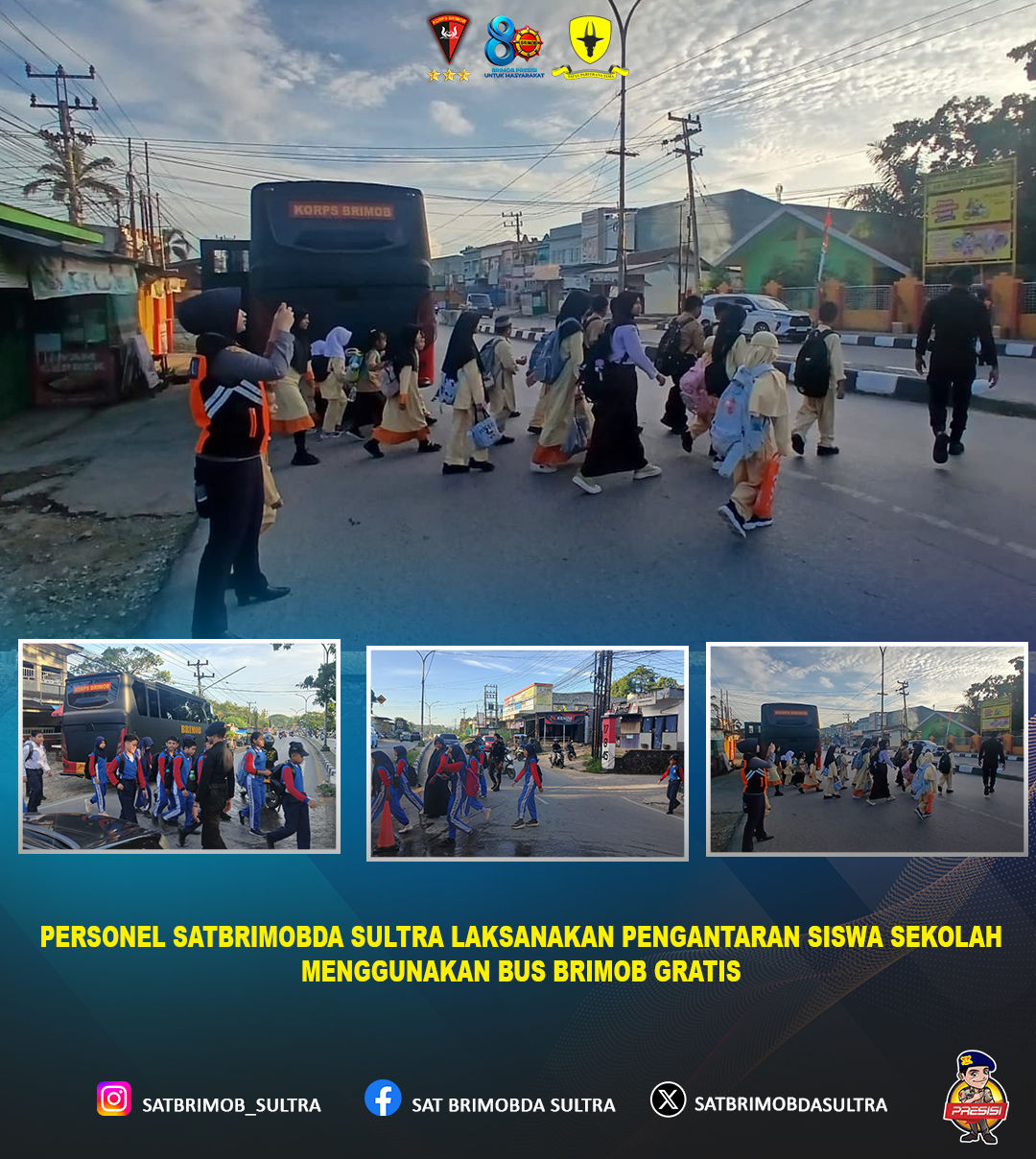 Dansat Brimob Polda Sulawesi Tenggara menyampaikan bahwa kegiatan pengantaran siswa ini merupakan bagian dari program pelayanan prima Polri kepada masyarakat, sekaligus upaya membangun kedekatan emosional antara Polri dan generasi muda. Kehadiran personel Brimob di tengah aktivitas pelajar diharapkan dapat memberikan rasa aman serta menumbuhkan kepercayaan publik terhadap institusi Polri.
