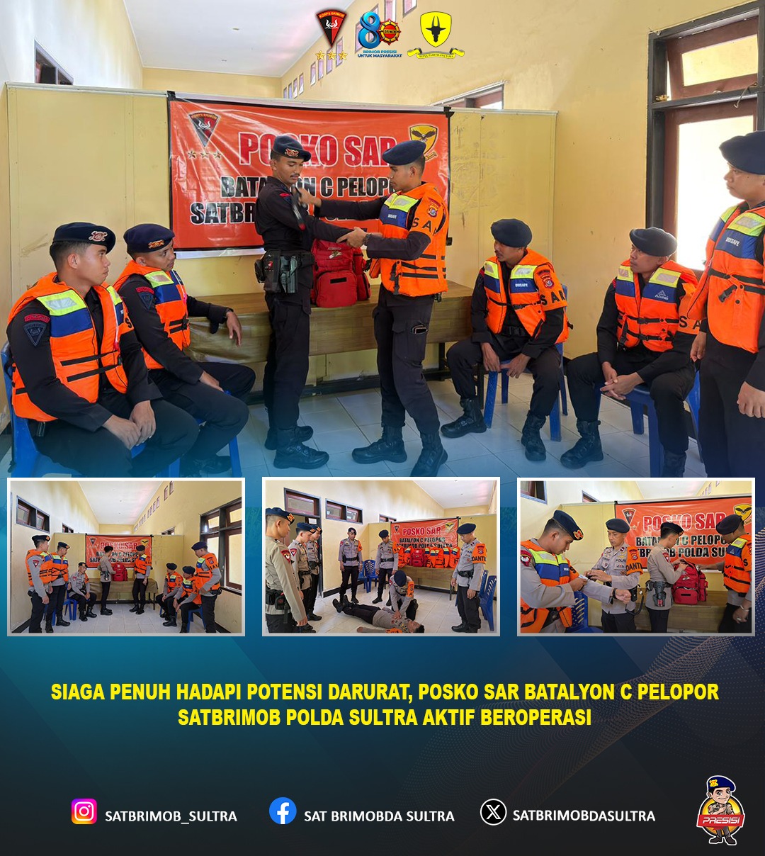Siaga Posko SAR ini bertujuan untuk memastikan respons cepat dan terkoordinasi apabila terjadi bencana alam, kecelakaan, maupun kondisi darurat lainnya. Selain itu, kesiapsiagaan ini juga menjadi wujud nyata komitmen Brimob dalam memberikan perlindungan dan pelayanan terbaik kepada masyarakat.
