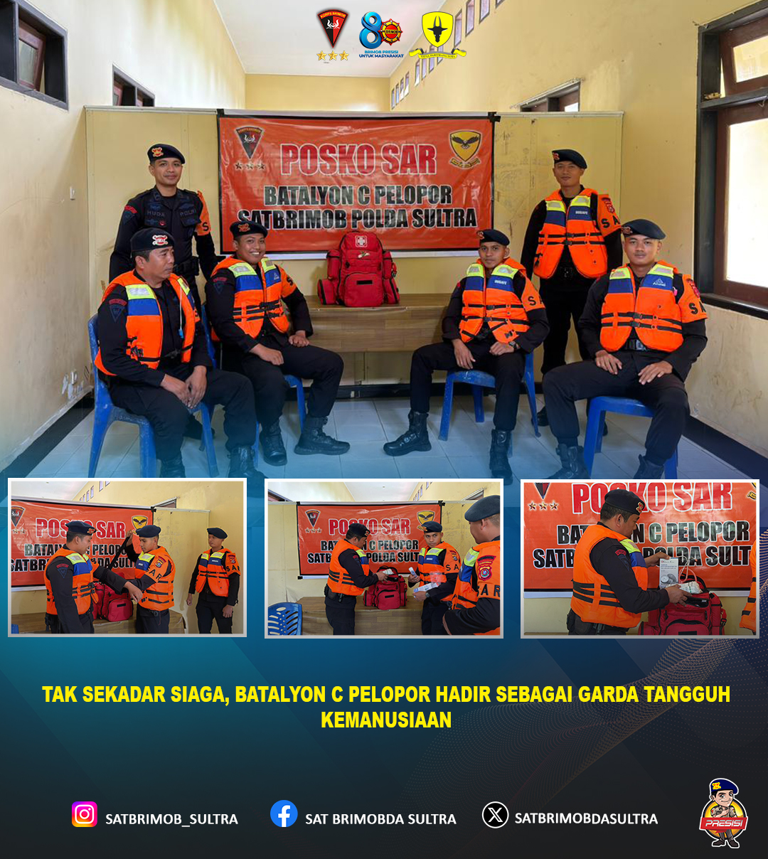 Personel Posko Siaga SAR Batalyon C Pelopor Satuan Brimob Polda Sulawesi Tenggara terus menunjukkan kesiapsiagaan dan dedikasi tinggi dalam mengantisipasi berbagai potensi bencana di wilayah hukum Polda Sulawesi Tenggara. Kegiatan ini merupakan bentuk komitmen nyata dalam memberikan perlindungan, pengayoman, dan pelayanan terbaik kepada masyarakat.