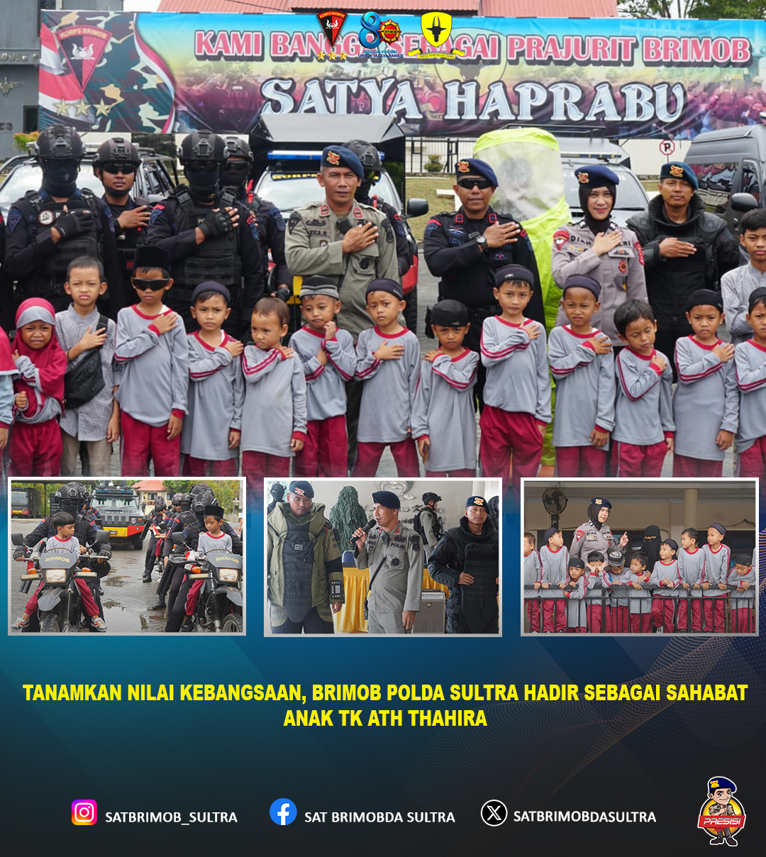 Kendari – Suasana ceria dan penuh keceriaan mewarnai Mako Satuan Brimob Polda Sulawesi Tenggara saat menerima kunjungan edukatif dari TK Ath Thahirah dalam rangka kegiatan pembelajaran luar kelas dengan mengusung tema “Brimob Sahabat Anak.”
