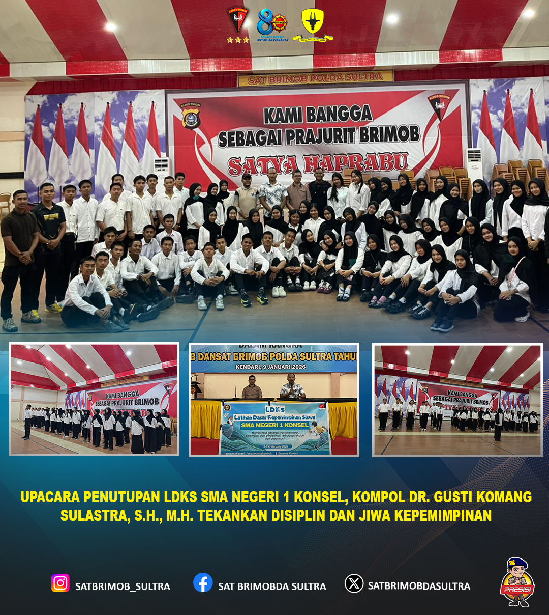 Kegiatan Latihan Dasar Kepemimpinan Siswa (LDKS) SMA Negeri 1 Konawe Selatan resmi ditutup melalui upacara yang berlangsung khidmat dan penuh semangat kebersamaan. Bertindak selaku pembina upacara, DPP Kompol dr. Gusti Komang Sulastra, S.H., M.H. menyampaikan pesan penting tentang pentingnya disiplin, tanggung jawab, serta integritas dalam membangun karakter generasi muda.