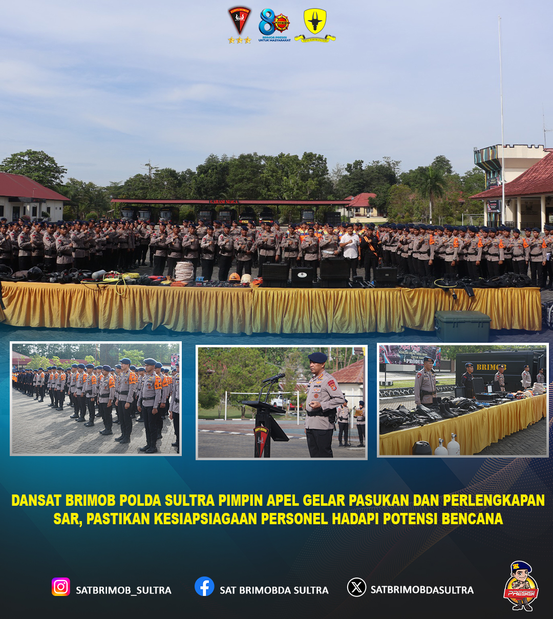 Apel gelar pasukan ini dilaksanakan sebagai bentuk pengecekan kesiapan personel maupun peralatan SAR dalam menghadapi potensi bencana alam maupun situasi darurat lainnya di wilayah hukum Polda Sulawesi Tenggara. Dalam kegiatan tersebut, seluruh personel yang tergabung dalam tim SAR ditampilkan lengkap dengan perlengkapan, mulai dari peralatan evakuasi, alat komunikasi, perlengkapan medis, hingga kendaraan operasional.