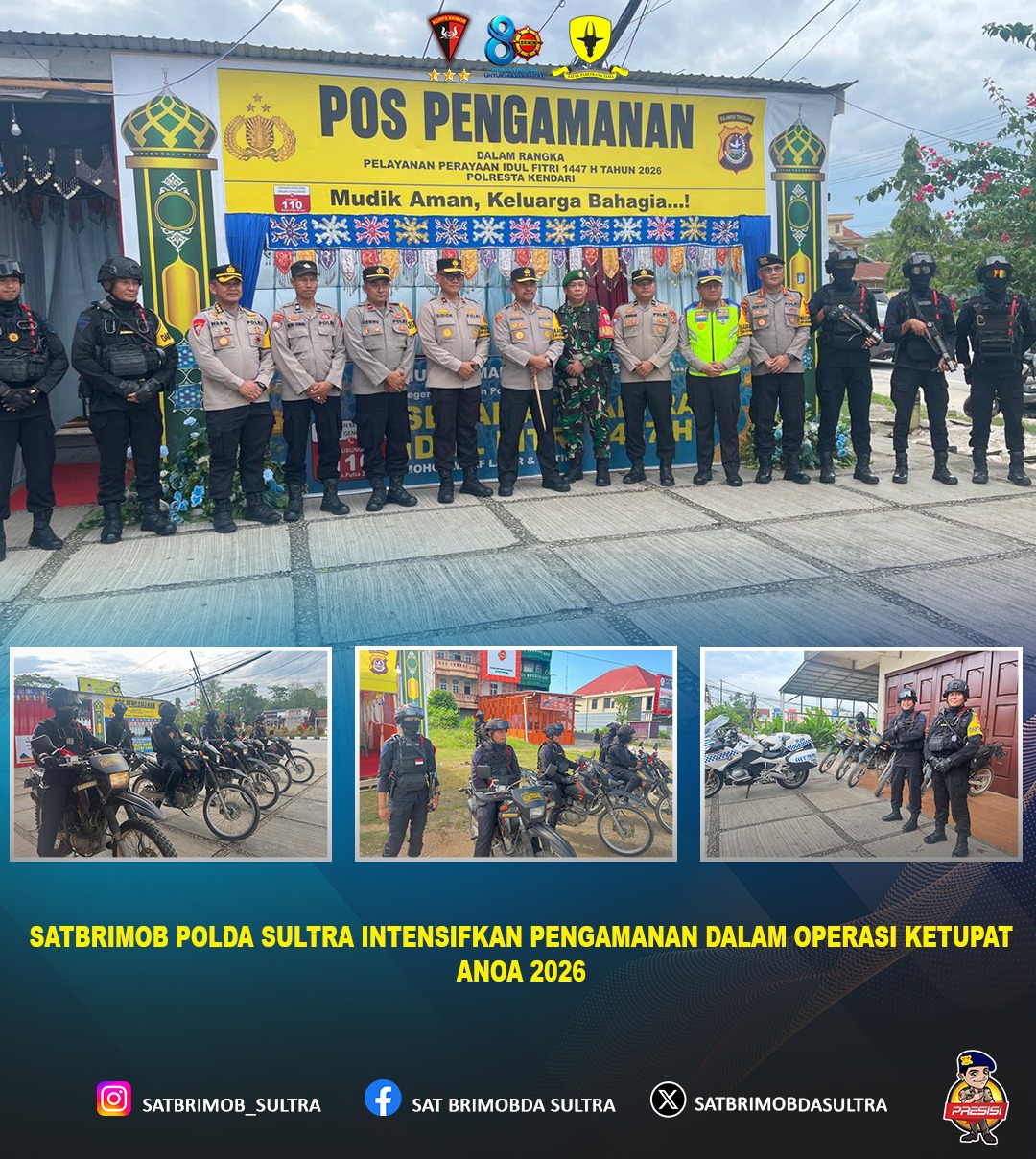 Melalui Operasi Ketupat Anoa 2026, Satbrimob Polda Sultra tidak hanya berfokus pada pengamanan, tetapi juga mengedepankan pendekatan humanis kepada masyarakat. Dengan kesiapsiagaan, disiplin, dan profesionalisme, diharapkan seluruh rangkaian perayaan Idul Fitri dapat berlangsung dengan aman, tertib, dan lancar.