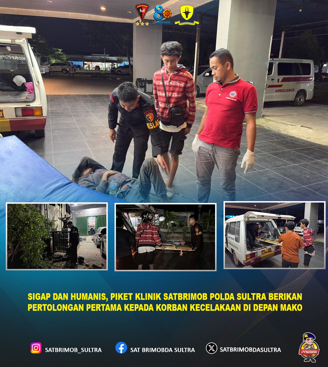 Peristiwa tersebut terjadi saat personel yang sedang melaksanakan piket di Klinik Satbrimob Polda Sultra melihat adanya kecelakaan lalu lintas yang terjadi tidak jauh dari depan gerbang Mako. Menyadari adanya warga yang membutuhkan bantuan medis segera, personel piket klinik bersama anggota yang berada di sekitar lokasi langsung bergerak cepat menuju tempat kejadian untuk memberikan pertolongan.