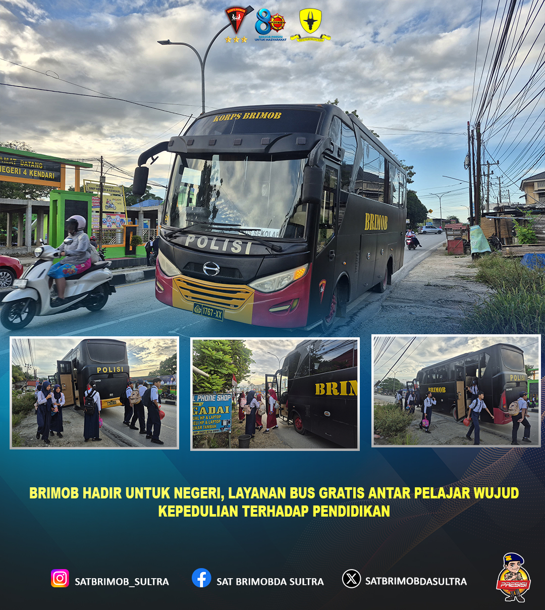Dalam upaya mendukung kelancaran serta meningkatkan semangat belajar generasi muda, Satuan Brimob di bawah naungan Kepolisian Negara Republik Indonesia terus menunjukkan kepeduliannya melalui program sosial berupa layanan bus gratis untuk mengantar anak sekolah.