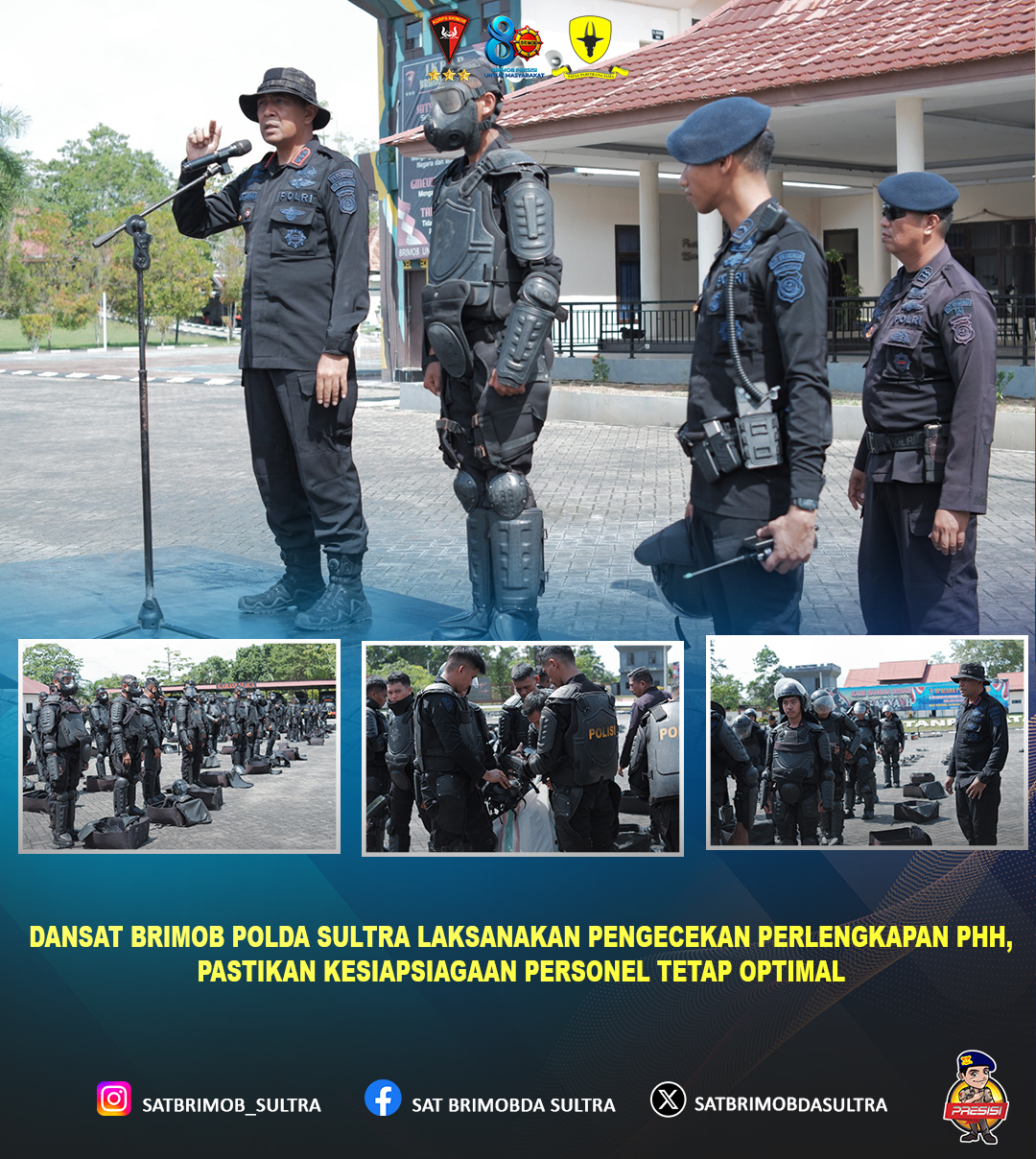 Kendari – Dalam rangka memastikan kesiapsiagaan dan profesionalisme personel di lapangan, Komandan Satuan Brimob Polda Sulawesi Tenggara, Kombes Pol Agus Setiawan, melaksanakan kegiatan pengecekan perlengkapan Pengendalian Huru-Hara (PHH) kepada seluruh personel.