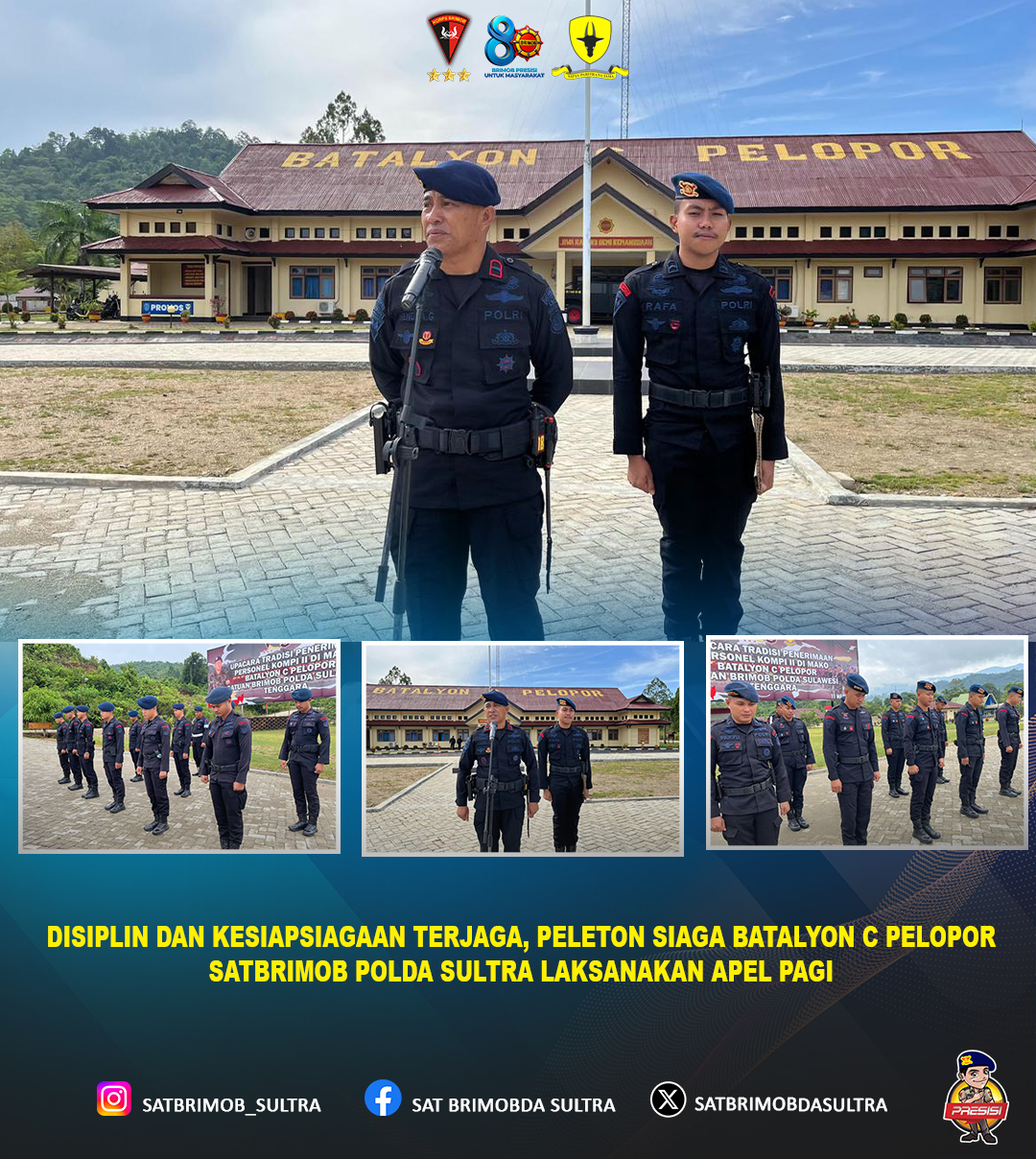 Dalam rangka menjaga kedisiplinan, kesiapsiagaan, serta profesionalisme personel, Peleton Siaga Batalyon C Pelopor Satuan Brimob Polda Sulawesi Tenggara melaksanakan kegiatan apel pagi yang berlangsung dengan tertib dan penuh khidmat.