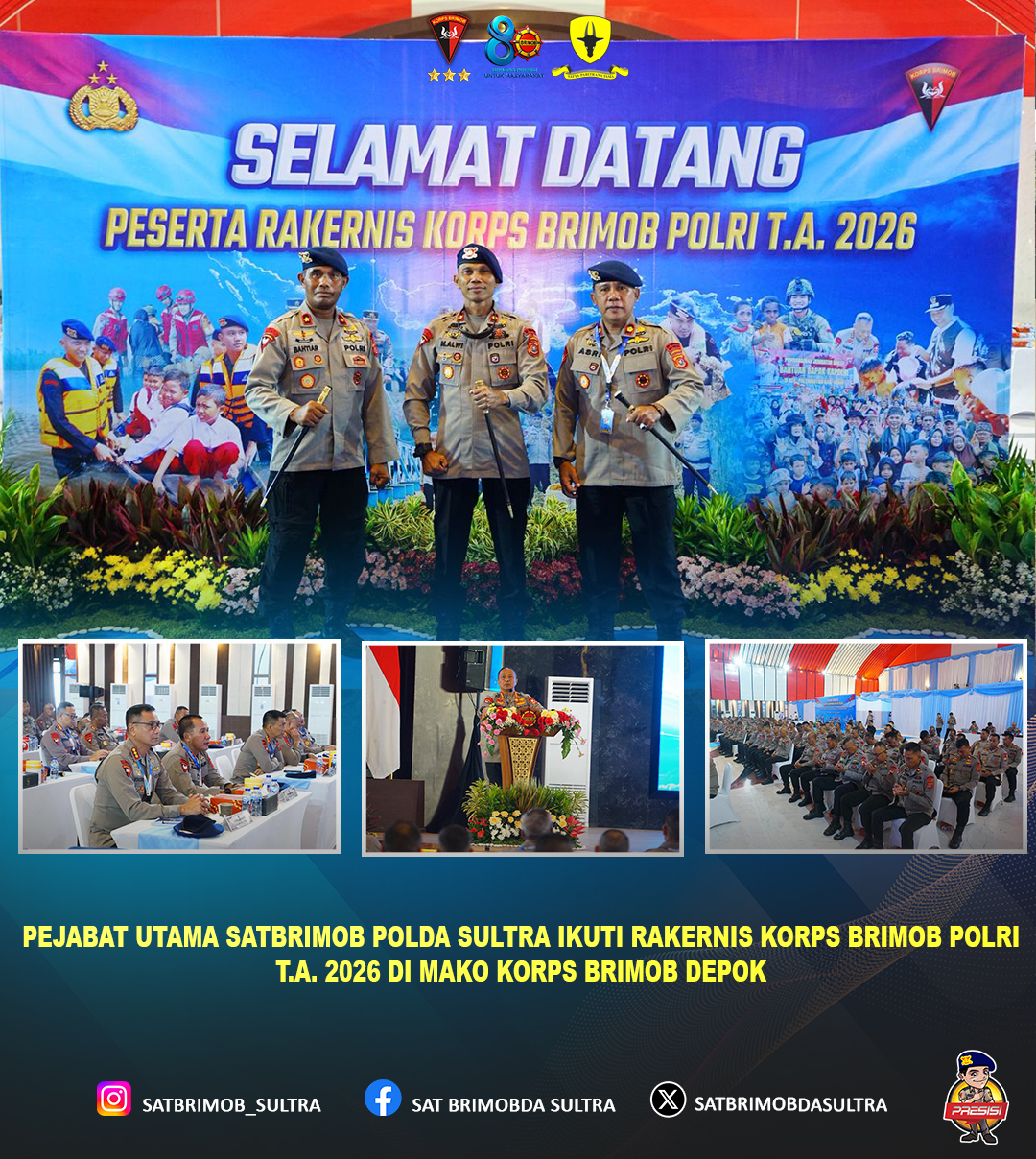 Sejumlah Pejabat Utama Satuan Brimob Polda Sulawesi Tenggara (Sultra) mengikuti kegiatan Rapat Kerja Teknis (Rakernis) Korps Brimob Polri Tahun Anggaran 2026 yang digelar di Markas Komando (Mako) Korps Brimob Polri, Kelapa Dua, Kota Depok. Kegiatan ini menjadi forum strategis dalam rangka meningkatkan profesionalisme, kesiapsiagaan, serta sinergitas satuan Brimob di seluruh Indonesia.