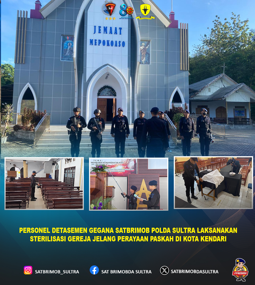 Dengan dilaksanakannya kegiatan sterilisasi ini, diharapkan umat Kristiani di Kota Kendari dapat menjalankan ibadah Paskah dengan penuh khusyuk tanpa adanya gangguan keamanan. Kehadiran personel Brimob di tengah masyarakat menjadi wujud nyata pelayanan Polri dalam menjaga stabilitas kamtibmas yang kondusif di wilayah Sulawesi Tenggara.