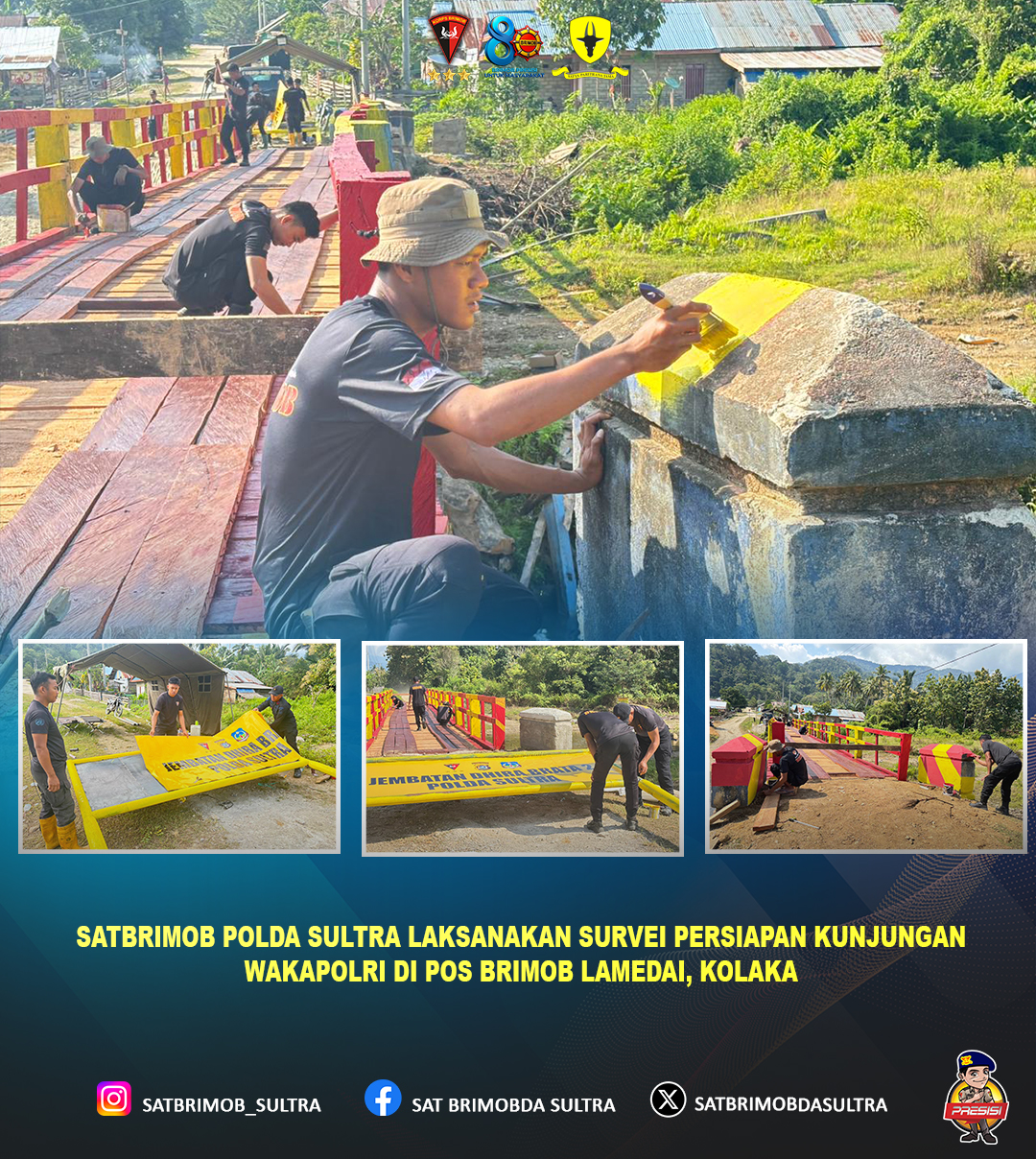 Dalam rangka memastikan kesiapan maksimal menjelang kunjungan Wakil Kepala Kepolisian Negara Republik Indonesia (Wakapolri), personel Satuan Brimob Polda Sulawesi Tenggara melaksanakan kegiatan survei di Pos Brimob Lamedai, Desa Lamedai, Kecamatan Tanggetada, Kabupaten Kolaka.